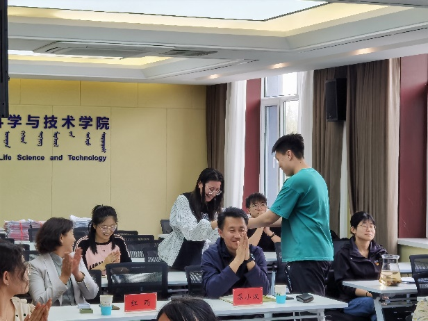 师生党员学习习近平新时代中国特色社会主义思想和新修订的《中国共产党纪律处分条例》的积极性和主动性,希望全院党员要把《中国共产党纪律处分条例》的学习继续融入日常生活工作中,进一步促进作风转变。结合当下正在推进的生物科学师范专业认证评建工作,他强调要切实将党纪学习教育和日常业务工作紧密相融,全院师生要继续巩固学习认证理念,增强认证工作的重视,积极做好专业认证的迎评工作。活动最后,苏小波书记和红雨院长共同为获奖队伍颁发了学校文创纪念品。