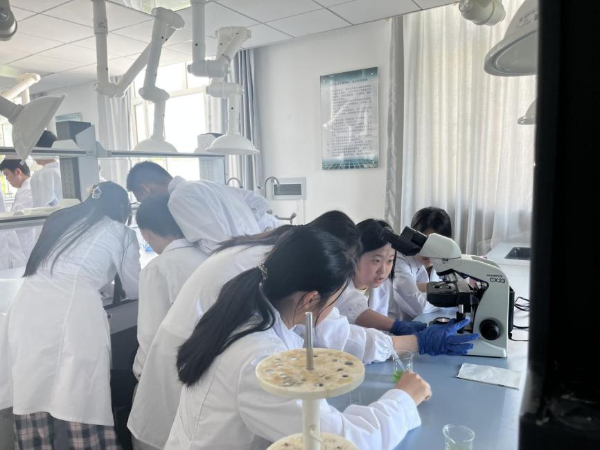次日,6月1日下午,30余名初中生参与了生物化学实验室的开放活动。支部党员穆文静老师为这些青少年志愿者进行了以“螺旋藻等藻类的形态与功能”、“蛋白质的生物学功能与定量分析”及“氨基酸与指纹提取”为主题的科普讲座。学生们不仅通过显微镜观察了藻类的形态,还亲自参与了生物样品蛋白质的定量测定实验。