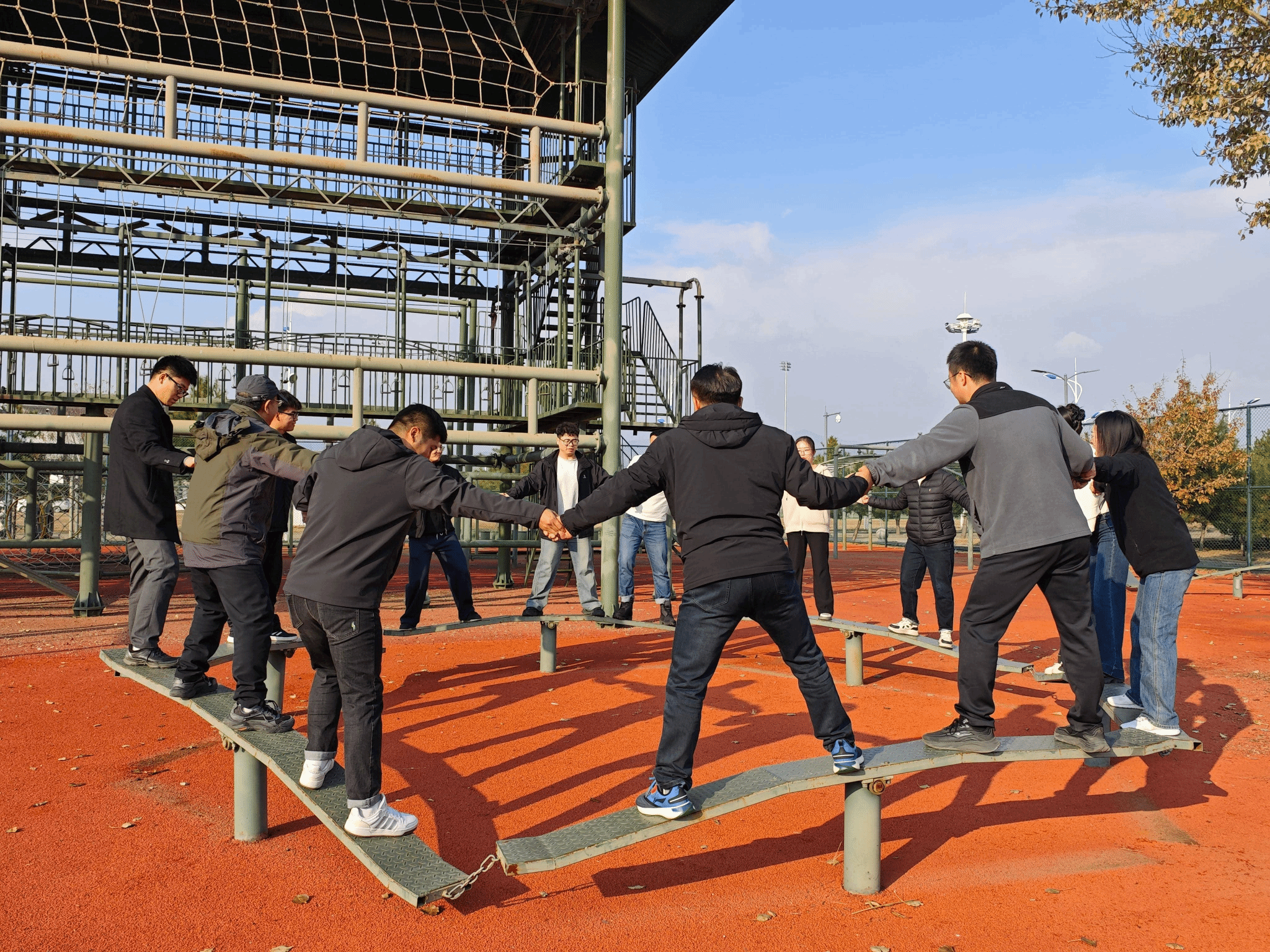 活动中,党员师生们共同参与了体能拓展训练与心理挑战项目,深刻体会到团队协作与坚韧意志的重要性。模拟射击环节,在训练体验中感悟军人精神与国防力量;在VR红色教育体验中,师生们佩戴VR眼镜“走进”中共一大现场,沉浸式重温党的光辉历程,深刻感悟革命先辈的理想信念与初心使命。