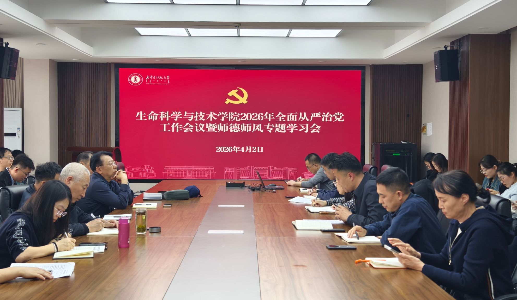 在生物楼三楼会议室召开2026年全面从严治党工作会议暨师德师风专题学习会。会议由党委书记苏小波主持,全院教师参加会议。