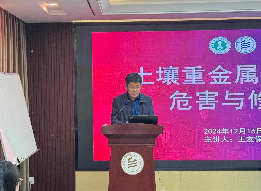 会前,院党委副书记、院长红雨教授介绍了王友保教授的科研生涯,王教授长期从事污染环境的生态安全评价与修复治理等研究工作,曾主持多项国家级重点科研项目,并在相关领域取得丰硕成果。报告会上,王教授举案例分享了有害重金属镉及其致病机制;分析了土壤污染的主要来源,重金属污染土壤的治理途径;系统介绍了土壤修复的分类与技术体系;随后,重点阐述了重金属污染植物修复技术,并展望了该领域未来的研究热点和发展趋势。