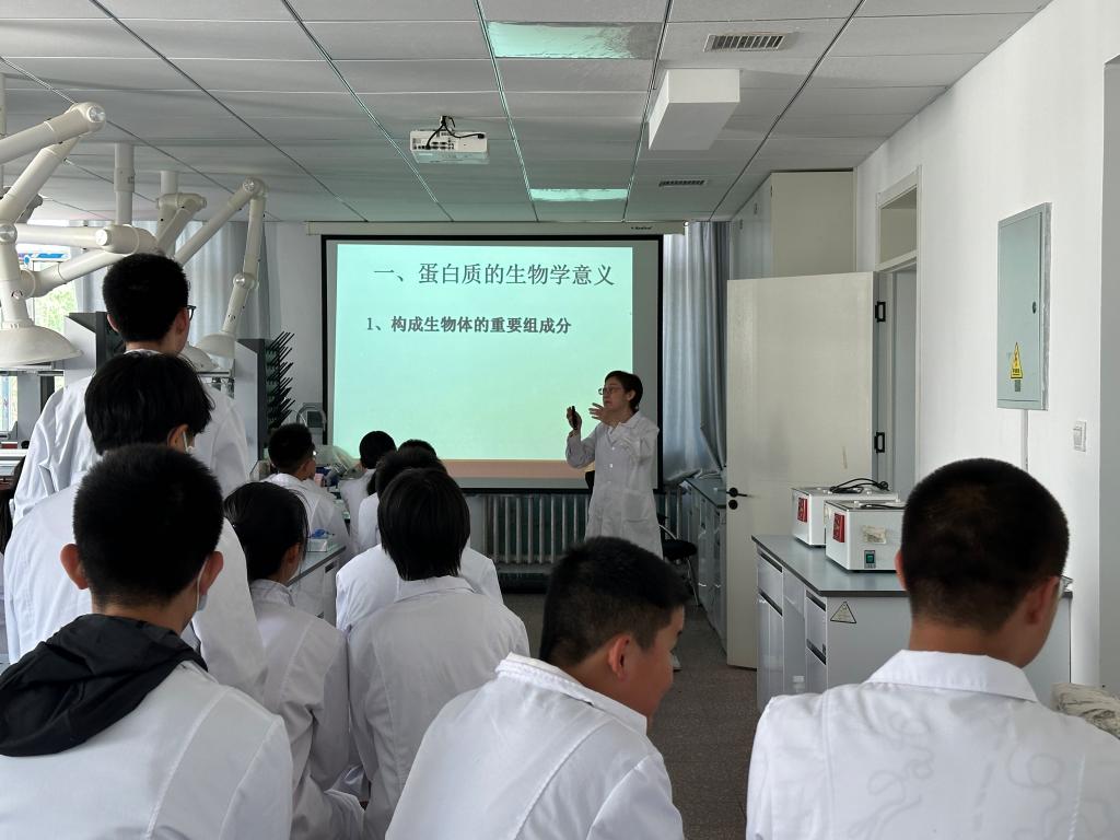 的分子生物学实验室,亲身体验科学仪器的操作和科研活动的实际运作。6月1日下午,30余名初中生参与了生物化学实验室的开放活动。学会会员穆文静老师为这些青少年志愿者进行了以“螺旋藻等藻类的形态与功能”、“蛋白质的生物学功能与定量分析”及“氨基酸与指纹提取”为主题的科普讲座。学生们不仅通过显微镜观察了藻类的形态,还亲自参与了生物样品蛋白质的定量测定实验。