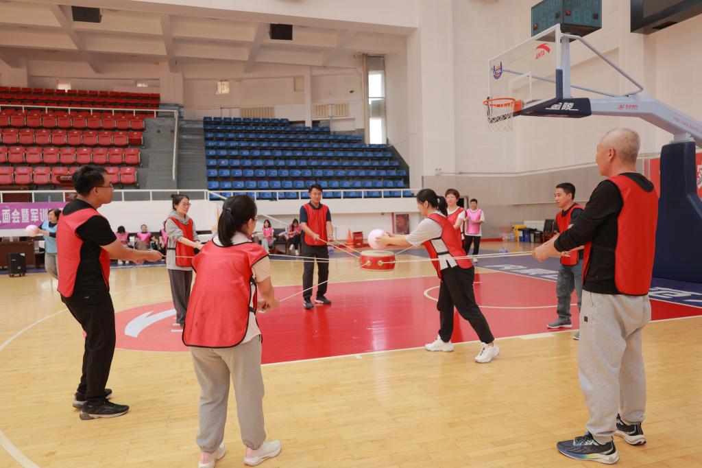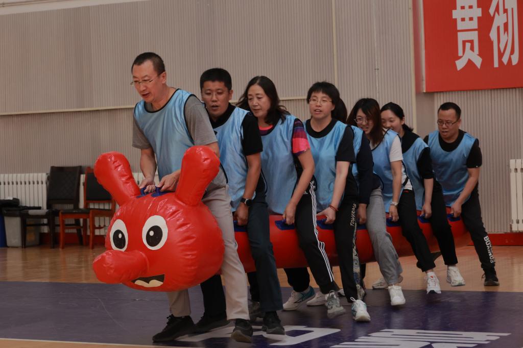 事业高质量发展。活动中,设置了“激情节拍”“旱地龙舟”“鼓动人心”“能量传递”“群龙取水”“急速60秒”等团队挑战项目,既考验团队成员间的沟通和协作能力,又考验团队成员的配合度和默契度。在紧张有趣的比赛氛围中,教师们分组合作,充分展现了默契与团队精神,欢声笑语充满了整个体育馆,平日工作紧张忙碌的心情一扫而空。