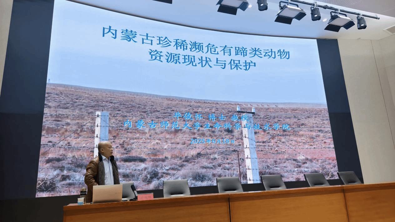 承办的离退休教授宣讲活动在赛罕校区信息楼学术报告厅举行。本次活动以"生态融思铸红魂,北疆学脉承初心"为主题,邀请毕俊怀教授做了题为《内蒙古珍稀濒危有蹄类动物资源现状与保护》的专题讲座。