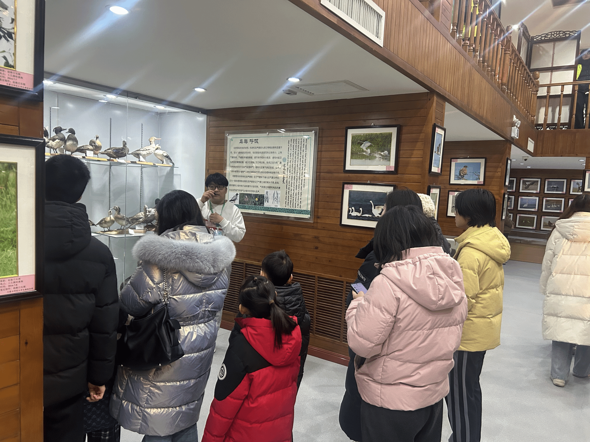 公众在学生志愿者引导下有序进入生物标本馆主展厅参观。作为目前自治区收藏最丰富、最具蒙古高原特色的综合性生物标本馆,馆内近50万号珍贵标本构成了立体的生命百科全书。参观者们漫步于展厅,近距离观摩了从草原代表性动物到各类植物、昆虫的丰富标本,纷纷驻足拍照、认真聆听学生志愿者的讲解。许多家长带着孩子前来,将这里作为生动的“第二课堂”。“看到这么多真实的标本,孩子对课本上学到的知识理解得更深刻了,也激发了她对自然的好奇心。”一位带着女儿参观的母亲如是说。活动现场秩序井然,文明参观蔚然成风。