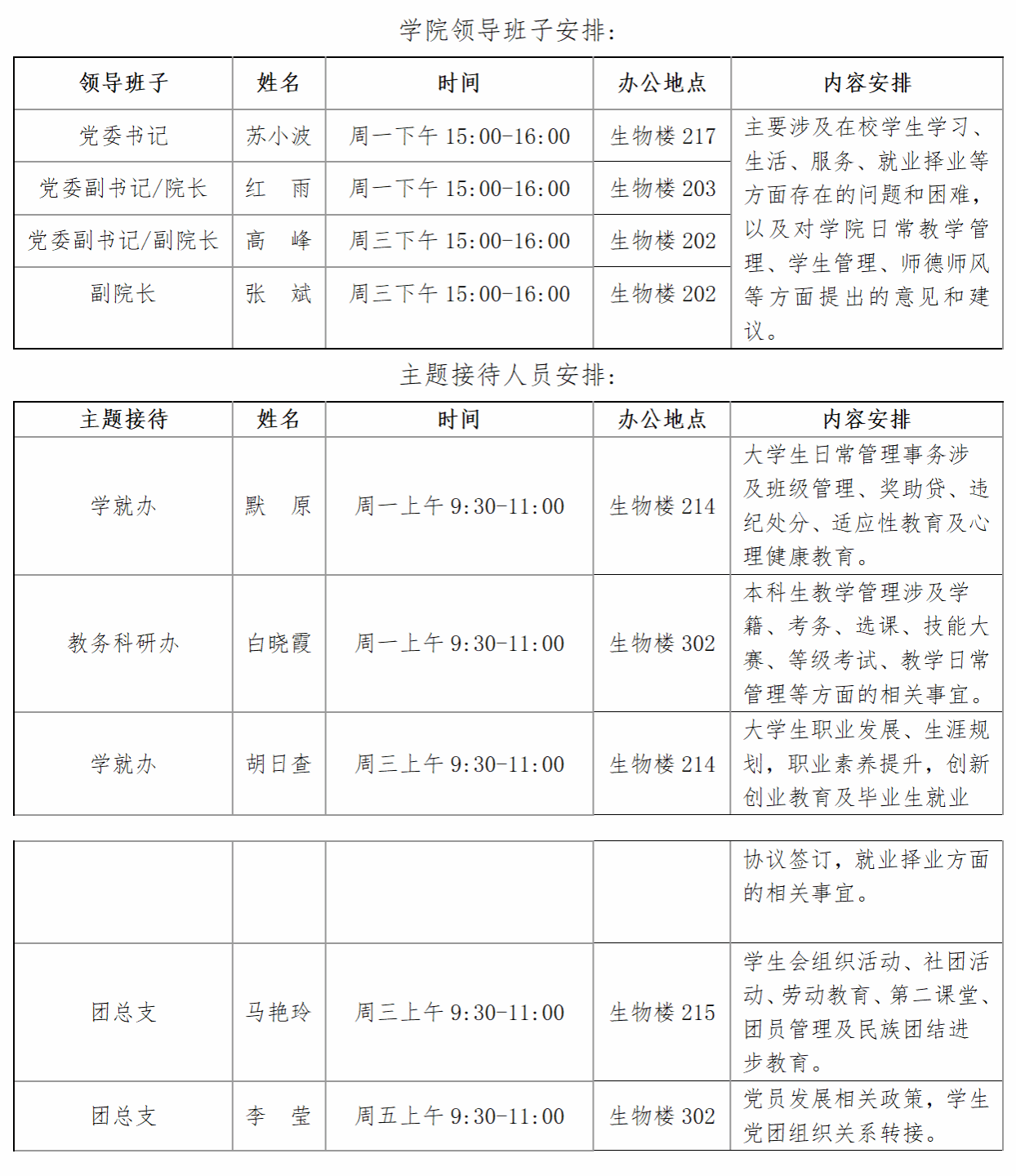 领导班子成员和主题接待人员(辅导员、本科生教学秘书)。